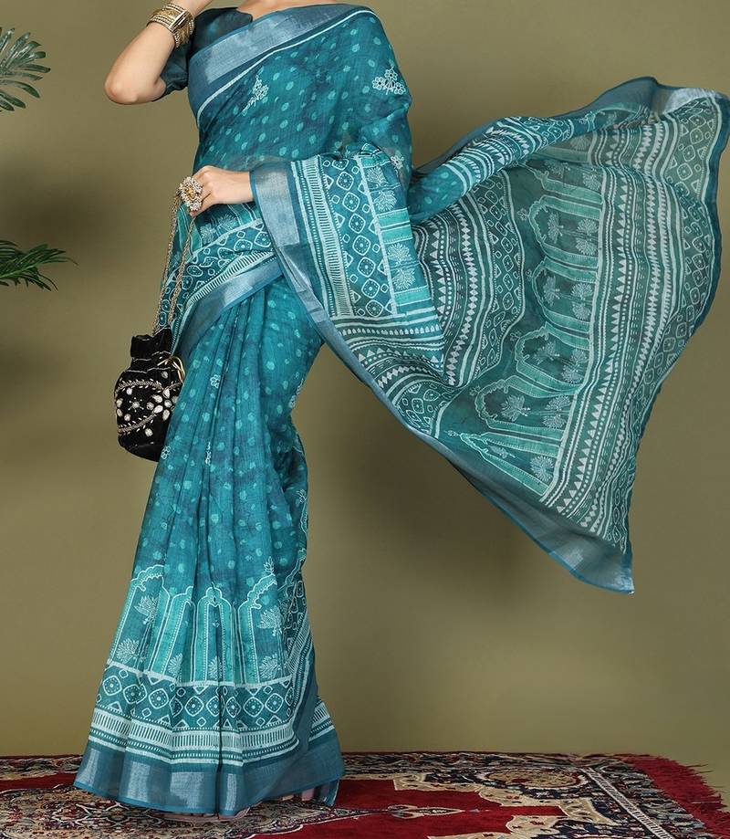 | • | Saree | : | Color- Sky Blue / Fabric- Cotton |