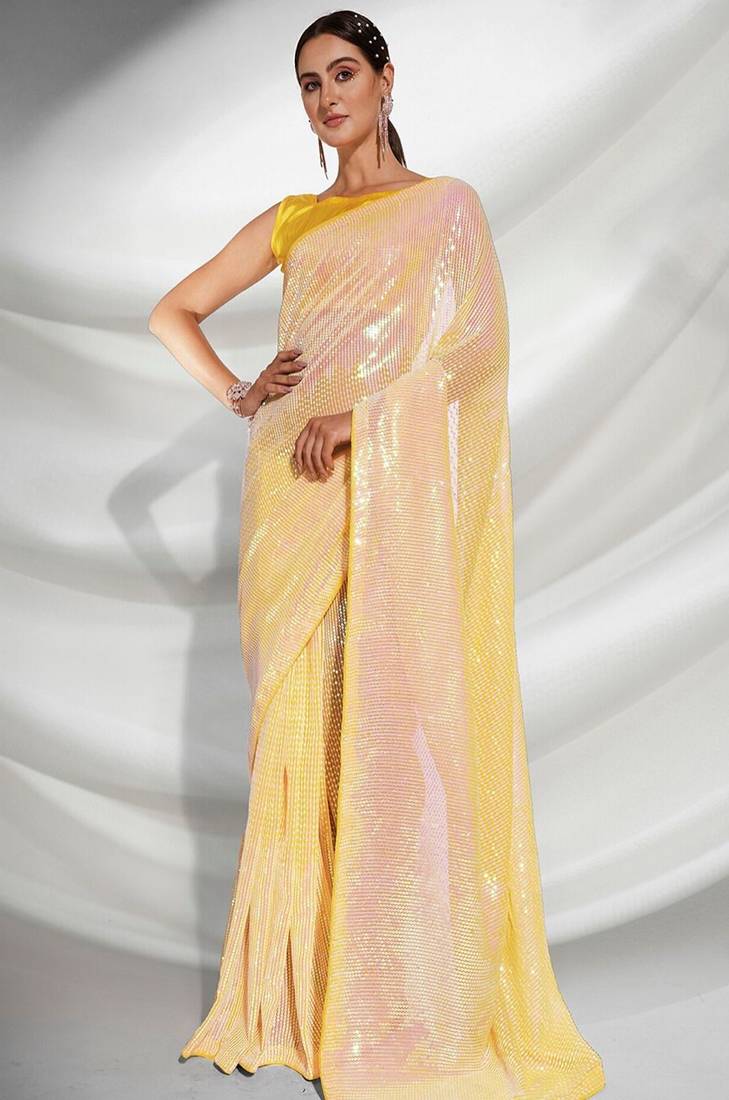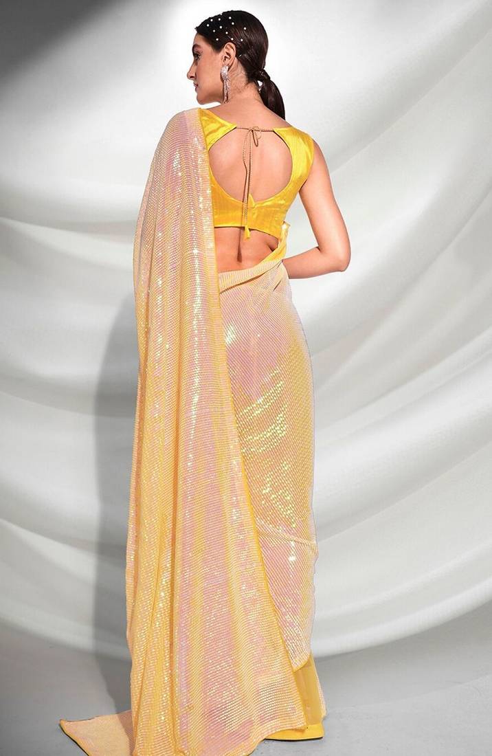 Celebrity-inspired heavy georgette sequins saree with mono banglori blouse