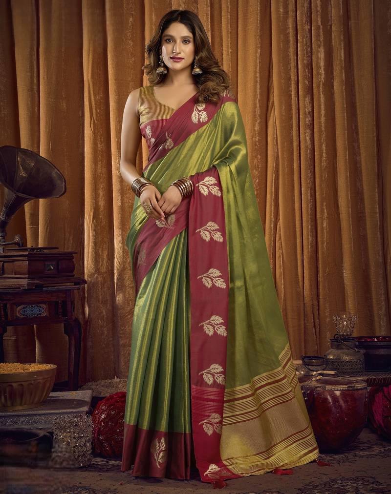 | Embellish | Elevate Your Festive Wardrobe With This Exquisite Soft Tissue Saree, Designed With A Rich Contrasting Border That Enhances Its Traditional Charm. | |