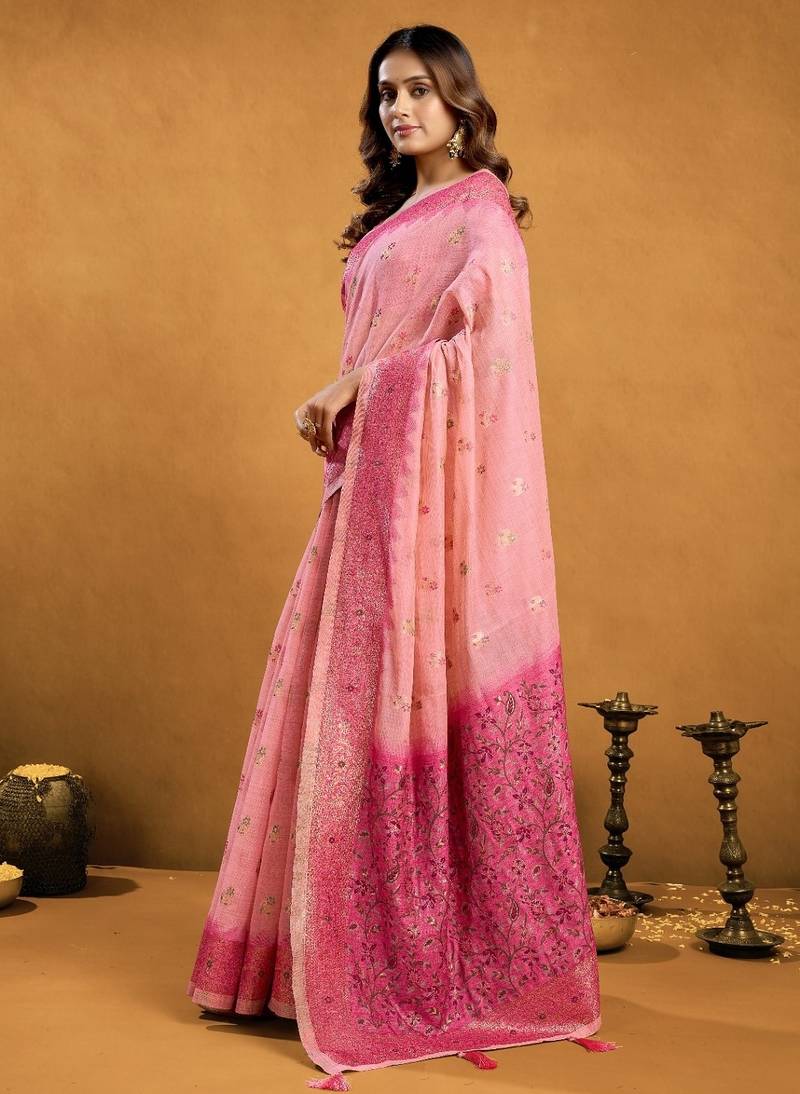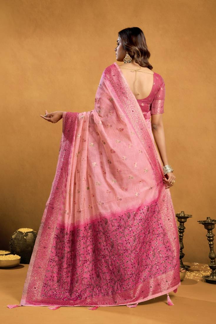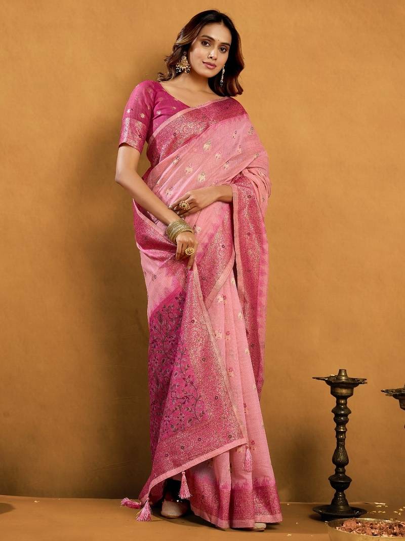 Saree : Color- Pink / Fabric- Cotton Silk