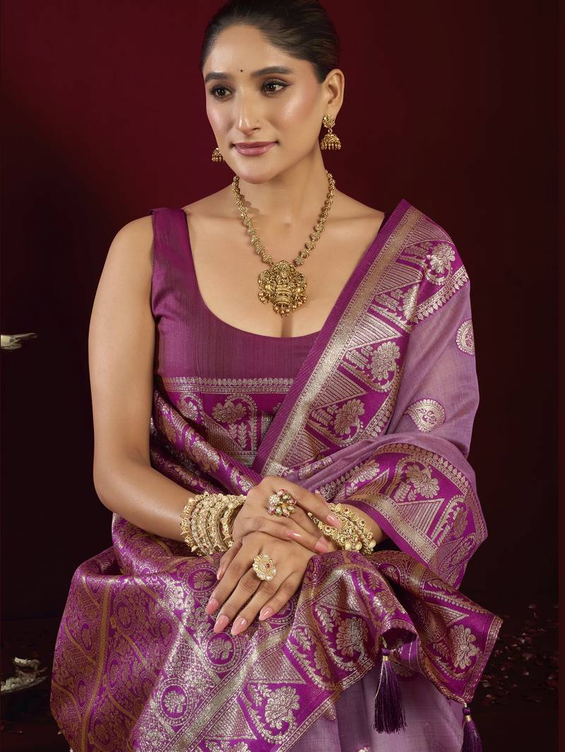 | • | Saree | : | Color- Lavender / Fabric- Silk Blend |
