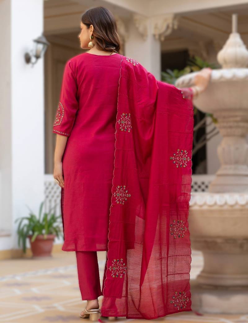 | Product Name | Pink Elegant Viscose Mango Silk Embroidered Kurti Pant Set With Dupatta | |