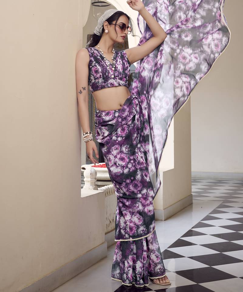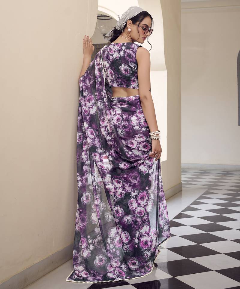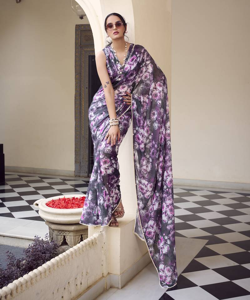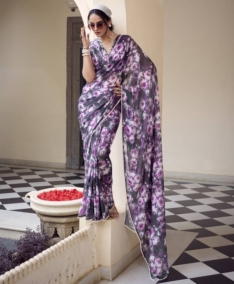 | Product Name | Weightless Marble Print Saree With Floral Design & Pearl Lace Border | |