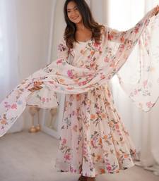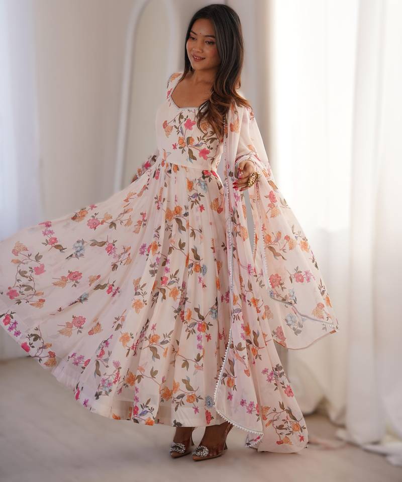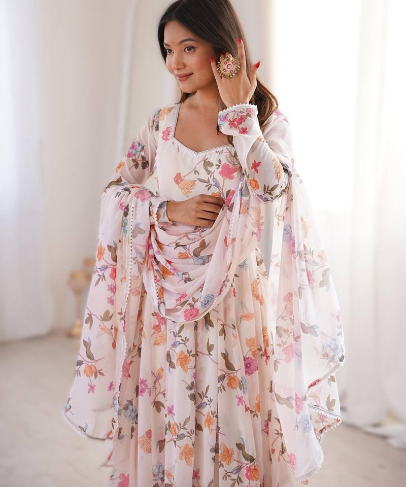 | Product Name | White Elegant Printed Georgette Gown Set With Dupatta Ready To Wear | |