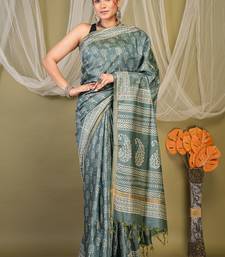 Teal green zari work cotton silk blend bhagalpuri ethnic saree with unstitched blouse