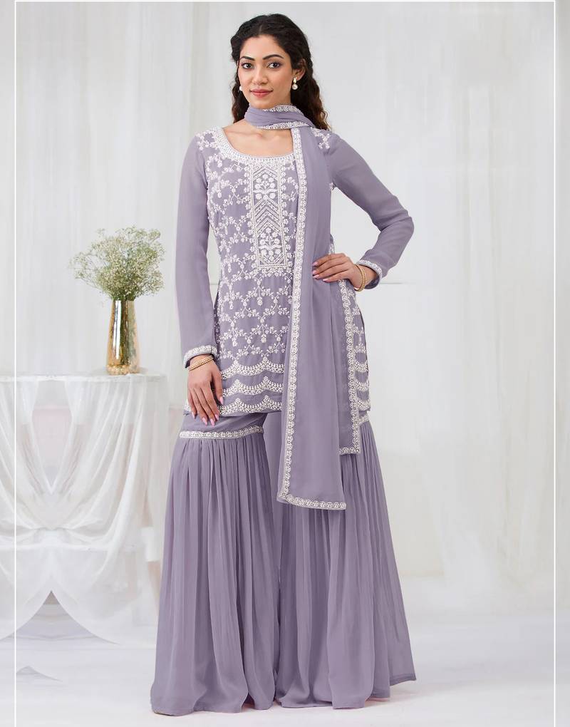 Product Name | Lavender Color Embroideried Faux Geogette Salwar Suit | |