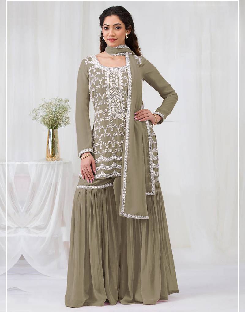 Product Name Mehendi Color Embroideried Faux Georgette Salwar Suit