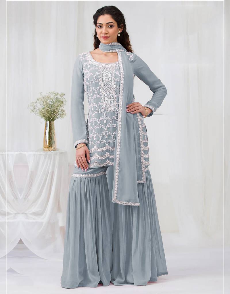 Product Name Sky Blue Embroideried Faux Georgette Salwar Suit
