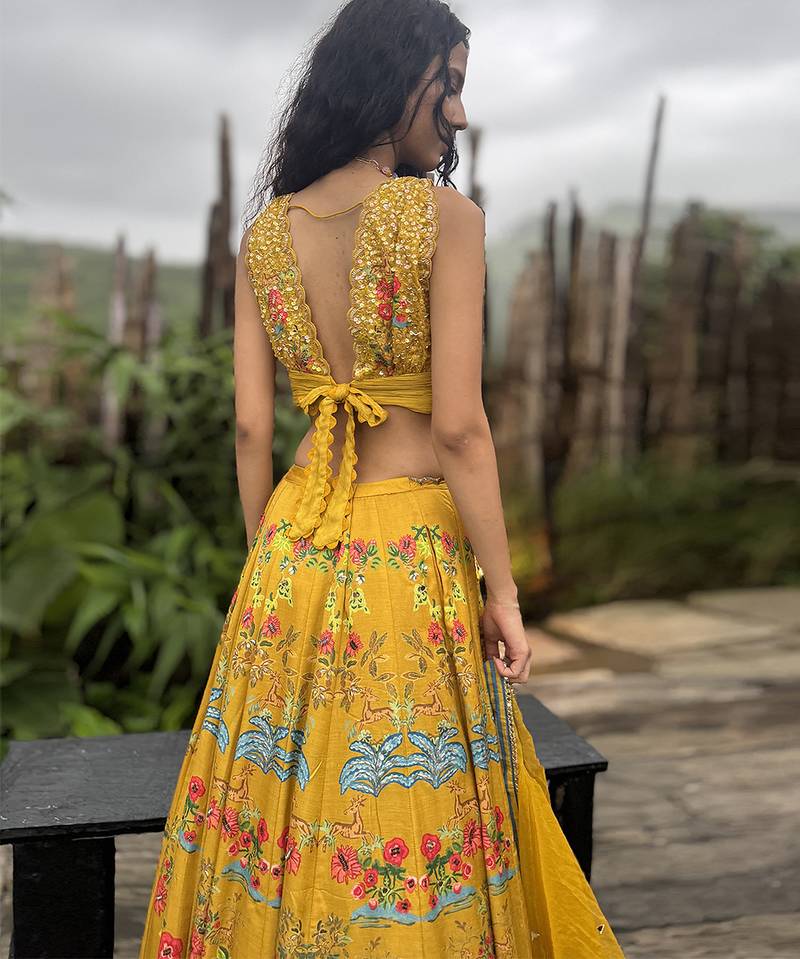 This Yellow Printed Linen Lehenga Set Reflects Fresh Elegance And Effortless Festive Charm. Crafted From Breathable Linen Fabric, It Features Vibrant Prints That Add A Lively, Stylish Touch. Perfect For Daytime Celebrations And Special Occasions, It Offers A Comfortable Fit, Graceful Silhouette, And Timeless Ethnic Appeal.