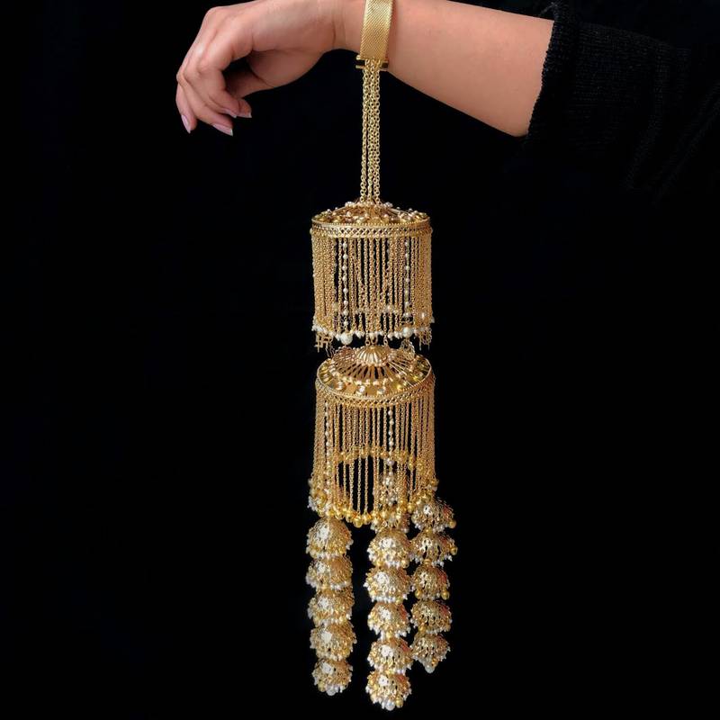 | Product Description | These Multi Layered Jhumki Cap Kaleere With Contemporary Styling Of Traditional Elements Like Kundans, Swastik & Om Charms, Pearls And Ghungroos Will Look Absolutely Stunning And Will Make Your D Day Look Especial. If You Want Something Exquisite And Contemporary But Also Want To Keep The Traditional Feel Alive, Choose This Pair Of Kaleere With Geometric Twist. Pair Of 2 Kaleera |