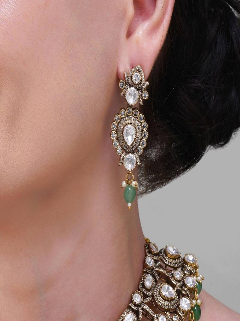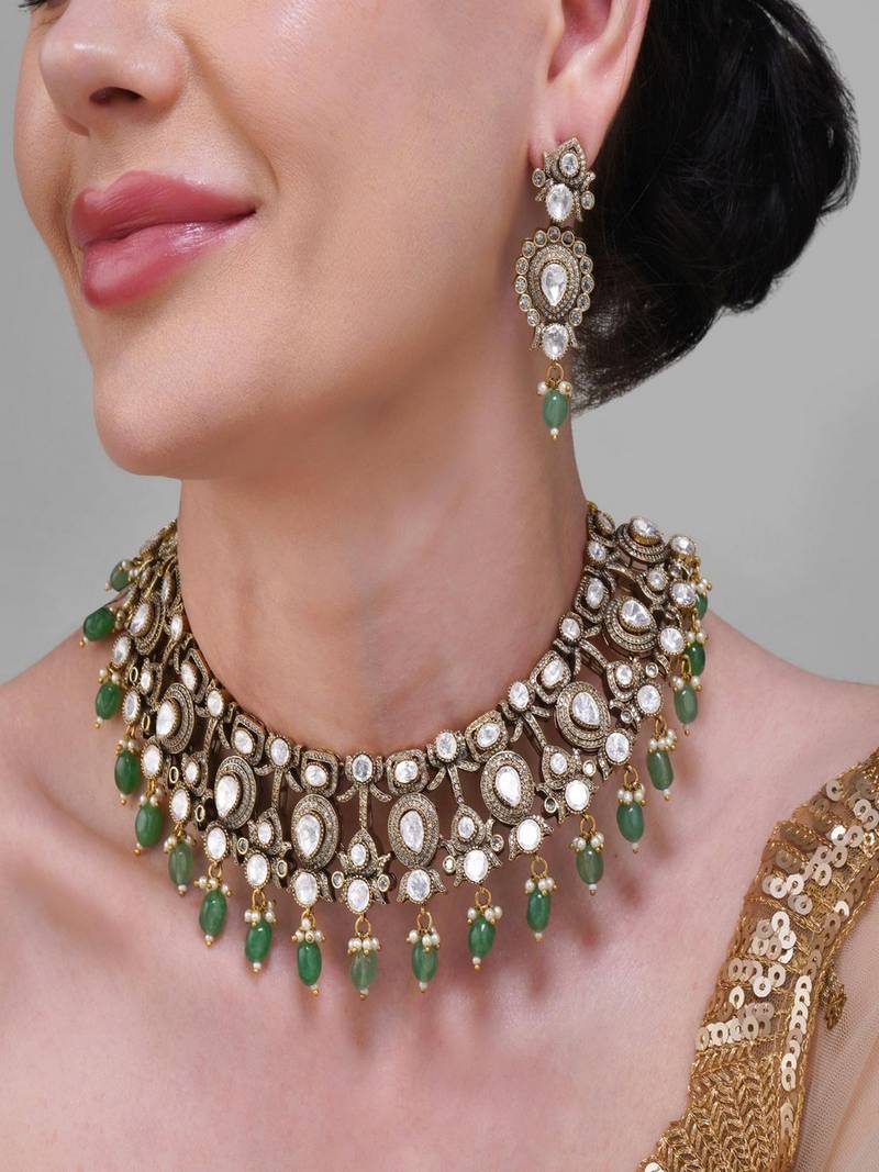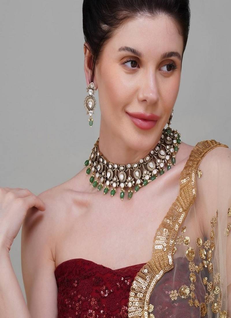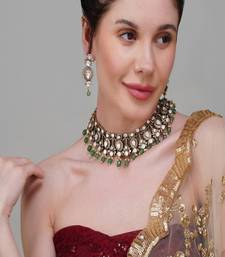 Product Name Gold Plated Kundan Green Stone Necklace Set