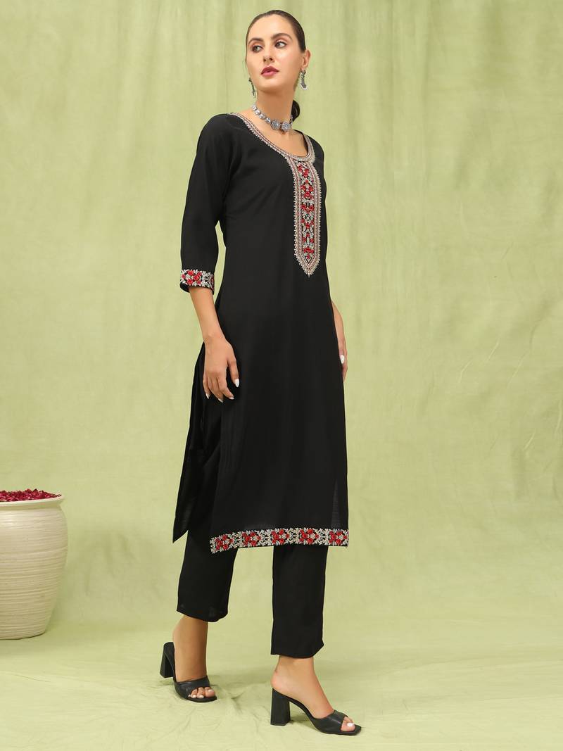 | Product Name | Black Embroidered Viscose Roman Silk Salwar Suit | |