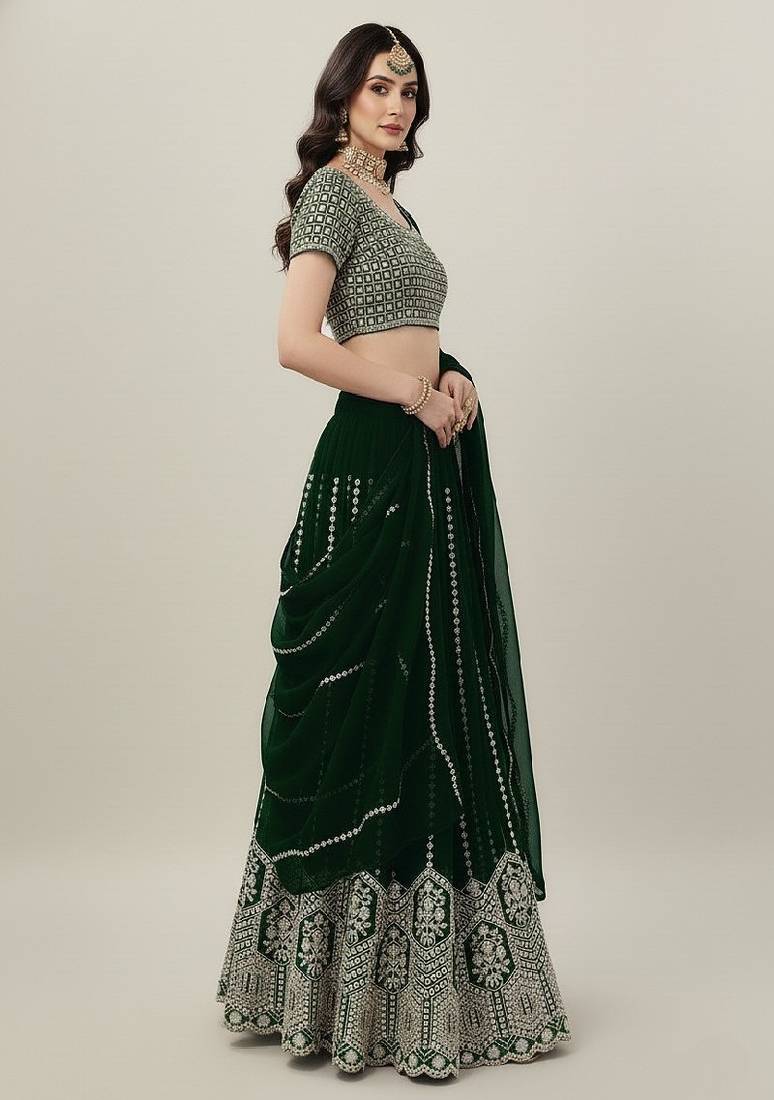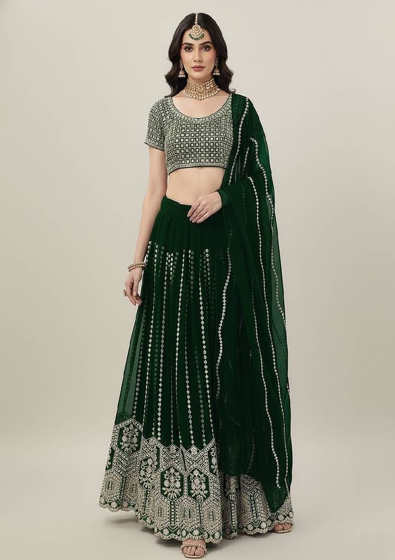 Green embroidery sequence faux georgette lehenga choli with dupatta