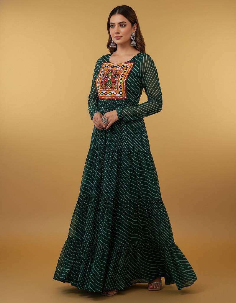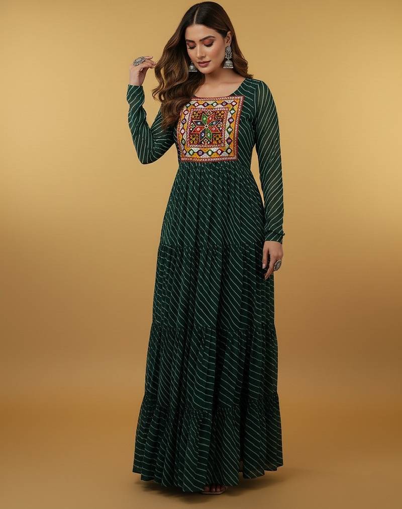 Green thread embroidery pure georgette salwar suit stitched