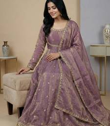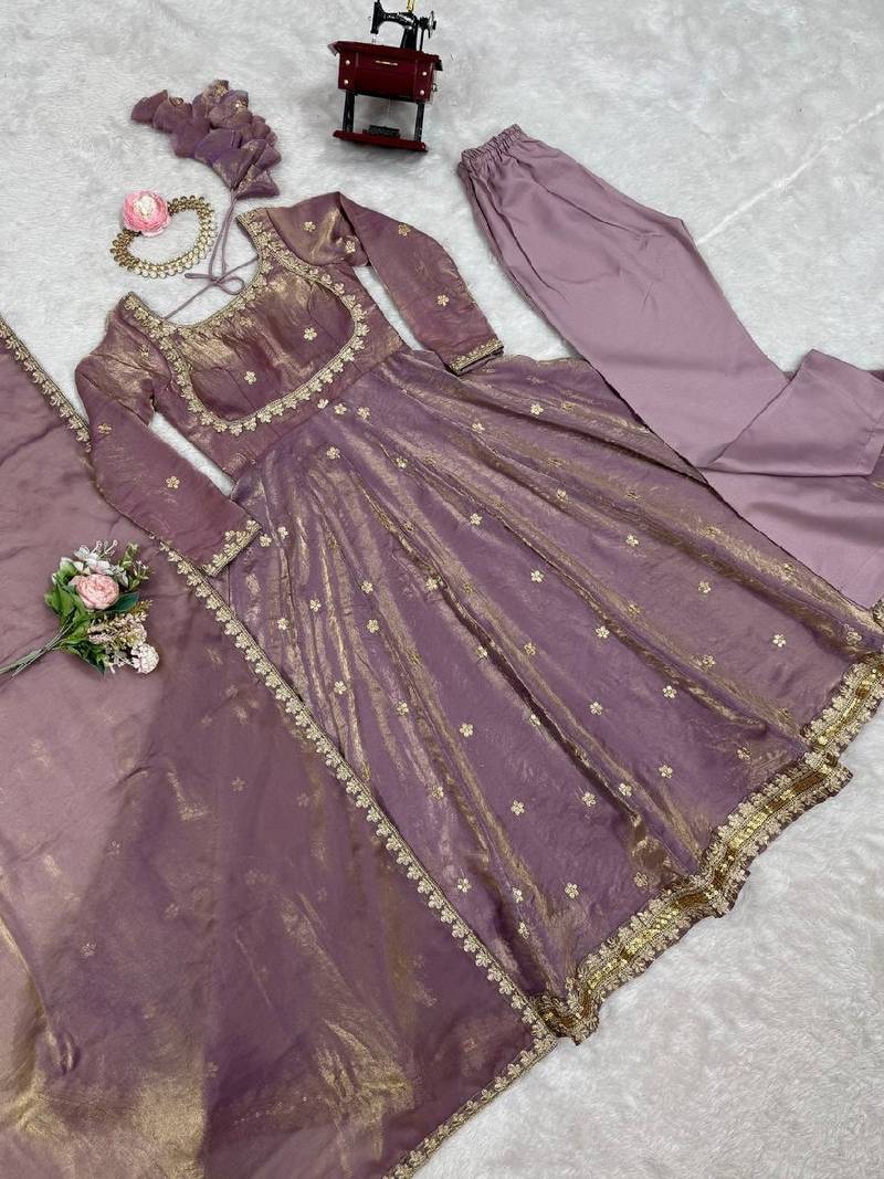 Lavender sequins silk blend salwar suit stitched
