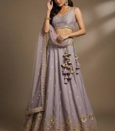 Mauve embroidery poly chiffon lehenga choli with dupatta