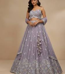 Mauve sequence thread & embroidery poly chiffon lehenga choli with dupatta