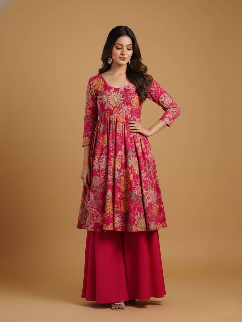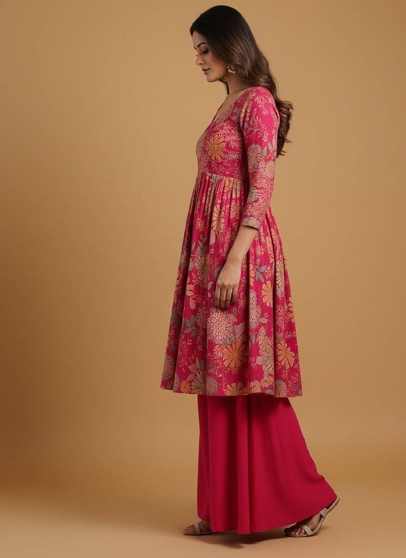| • | Bottom | : | Color- Rani Pink / Fabric- Pure Chanderi Silk |