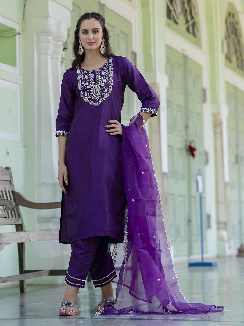 | Product Name | Purple Embroidered Silk Blend Salwar Suit | |