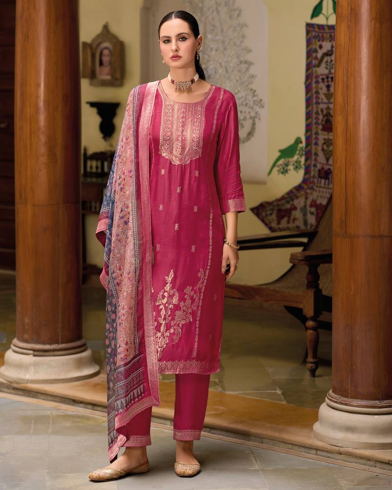 | Product Name | Red Embroidered Viscose Self Jacquard Kurta Sets | |