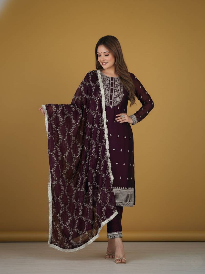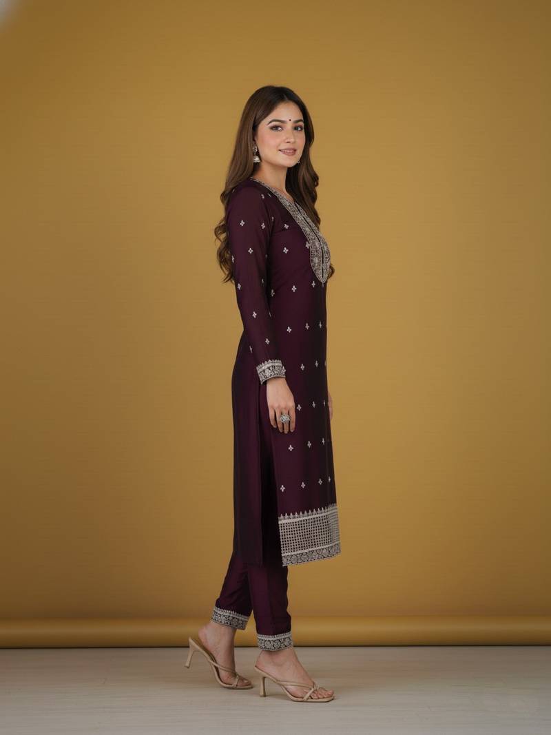 | Product Name | Wine Embroidered Pure Silk Salwar Suit | |
