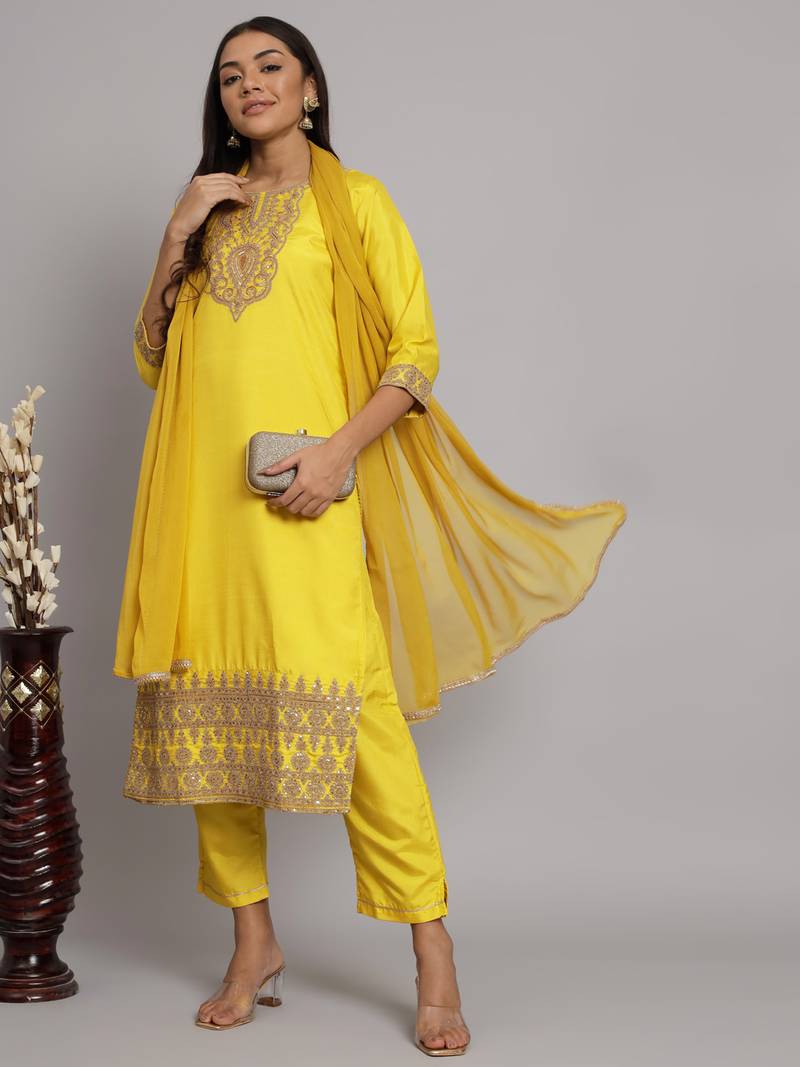 | Product Name | Yellow Embroidered Silk Blend Salwar Suit | |