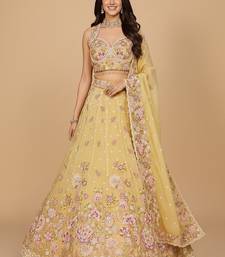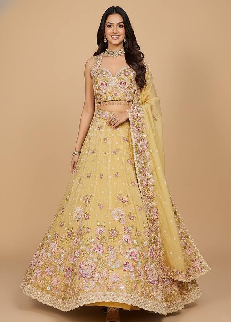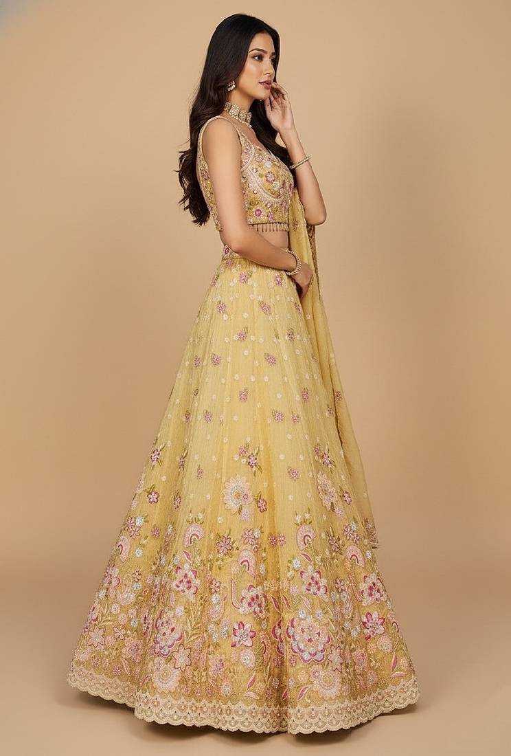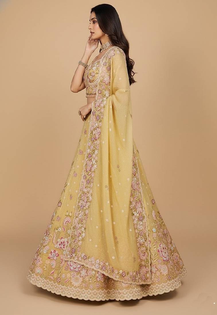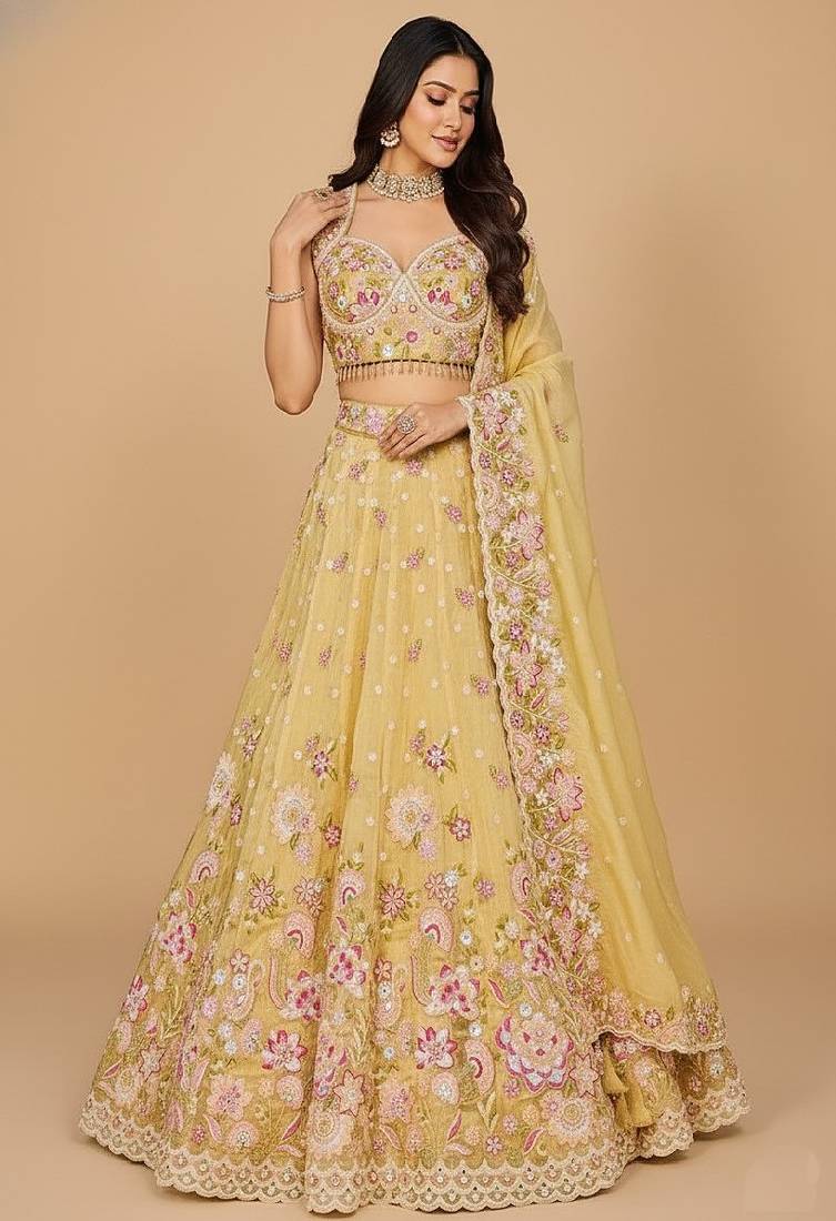 Yellow embroidery organza lehenga choli with dupatta