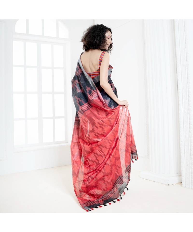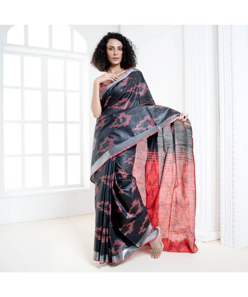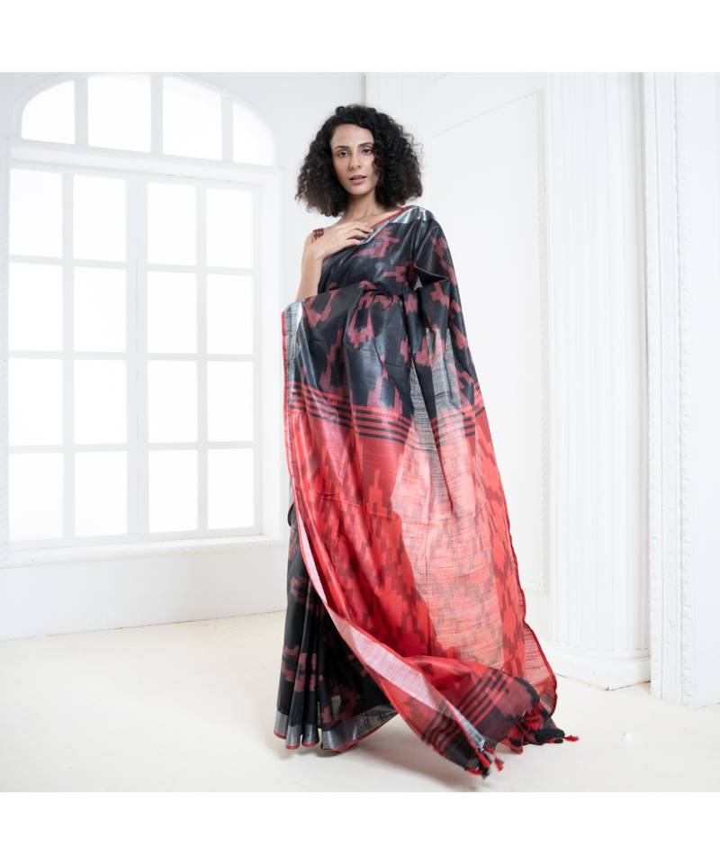 | Product Name | Black Blended Cotton Ikkat Saree With Red Motifs And Pallu | |