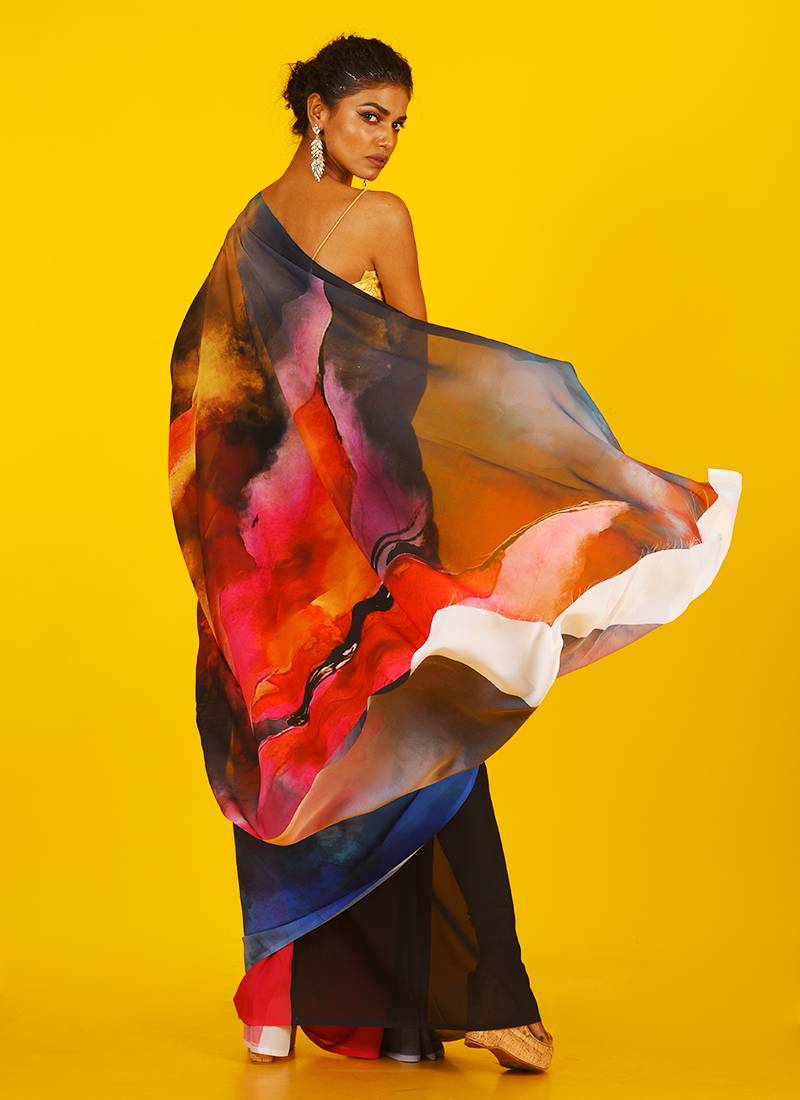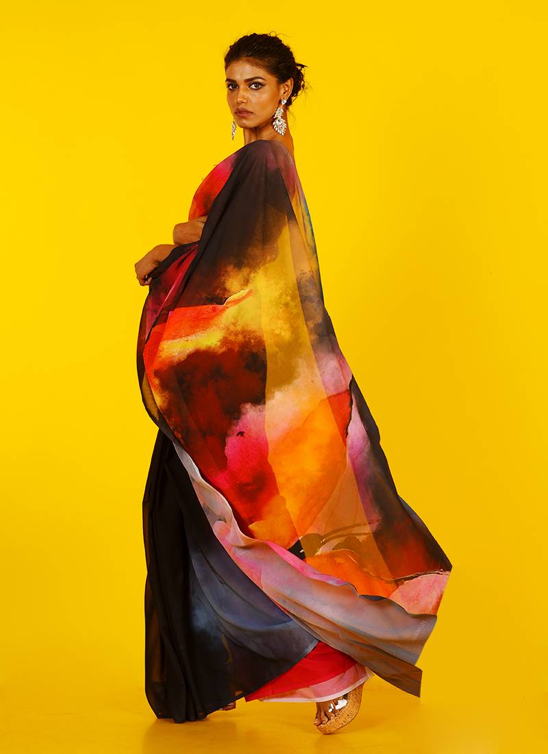 Black honeysong blended georgette digital printed saree