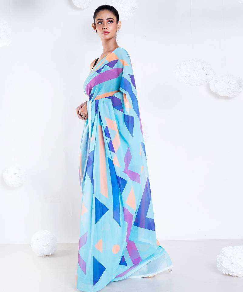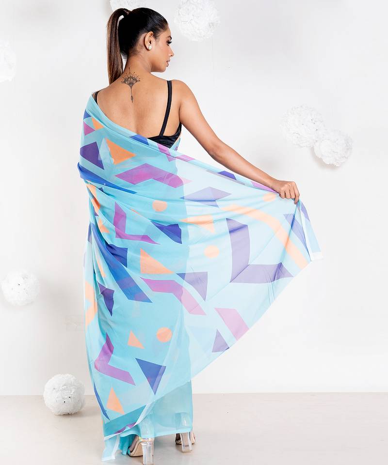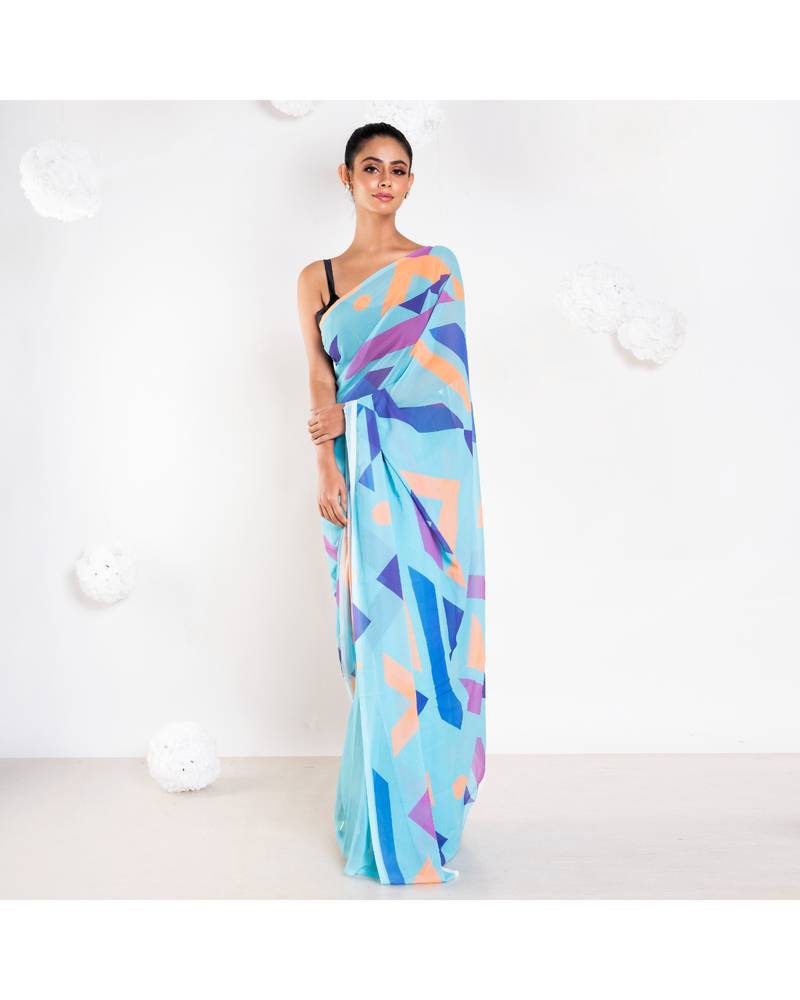 Carol georgette digital printed saree in blue color