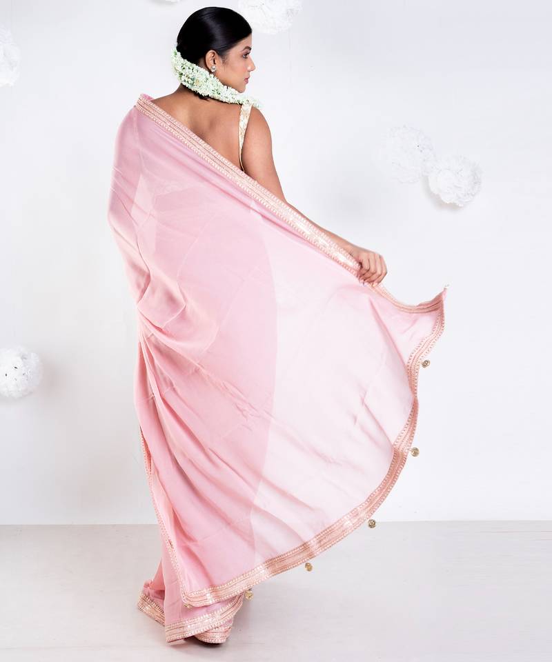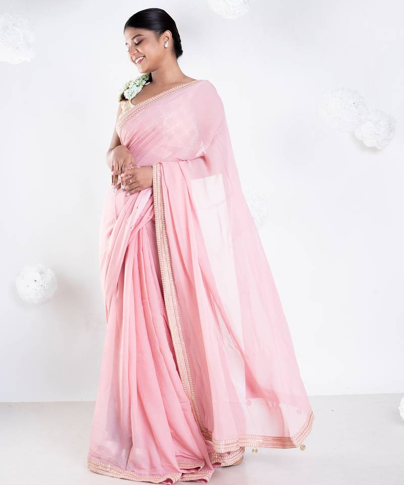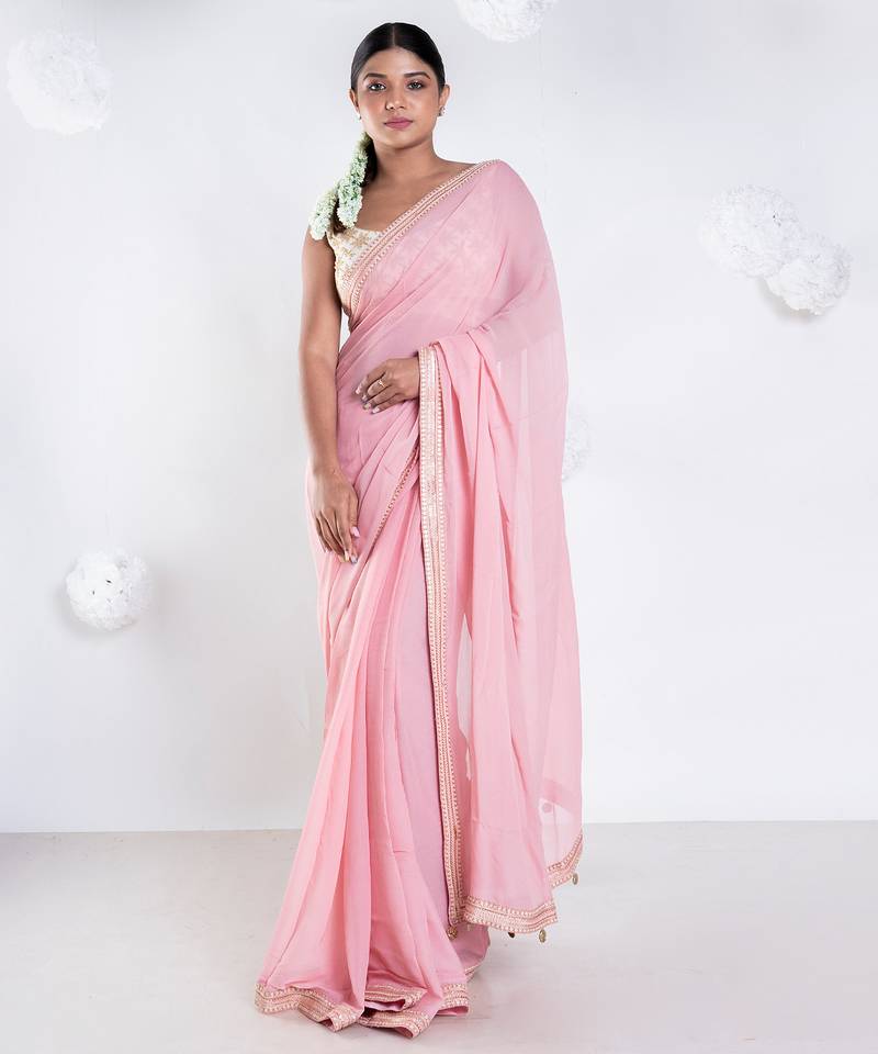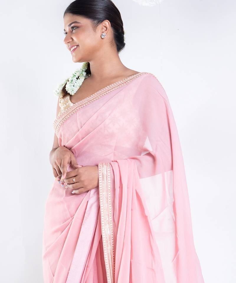 | Product Name | Pink Color Georgette Saree With Golden Embroidered Border | |
