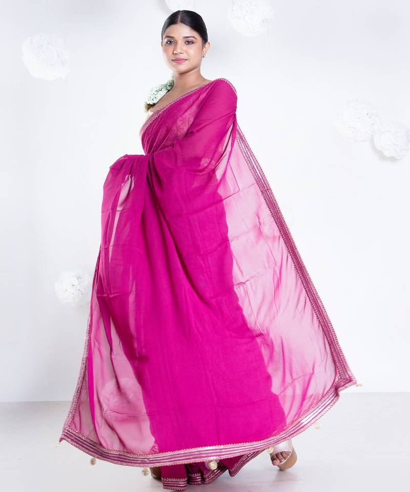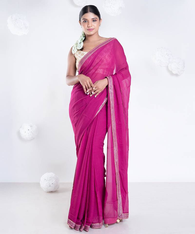 | Product Name | Georgette Saree With Pink Color With Golden Embroidered Border | |