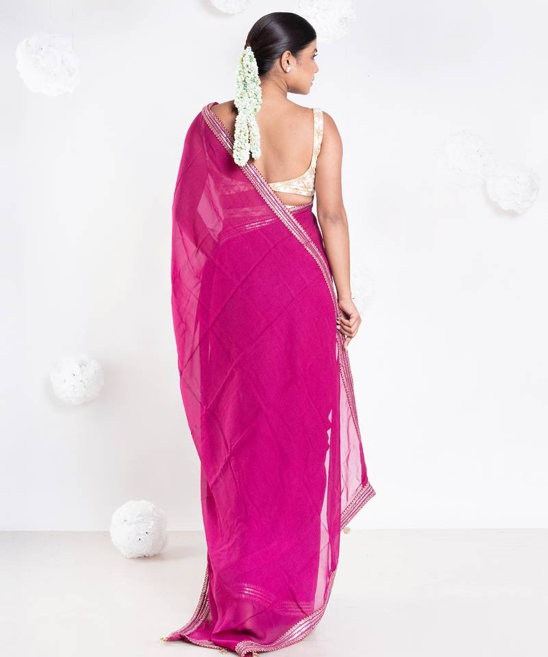 Georgette saree with pink color with golden embroidered border