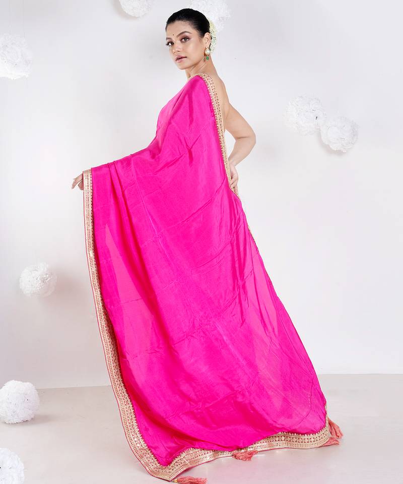 | Product Name | Habutai Silk Blend Saree With Pink Color With Golden Embroidered Border | |