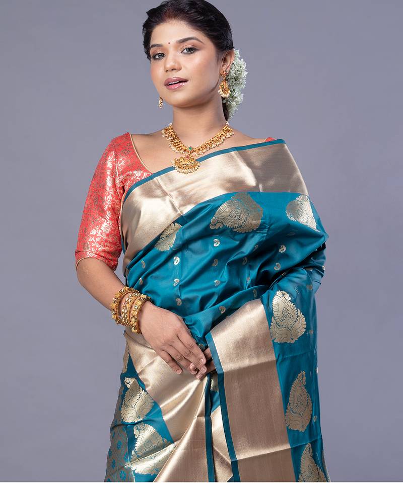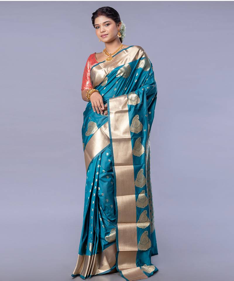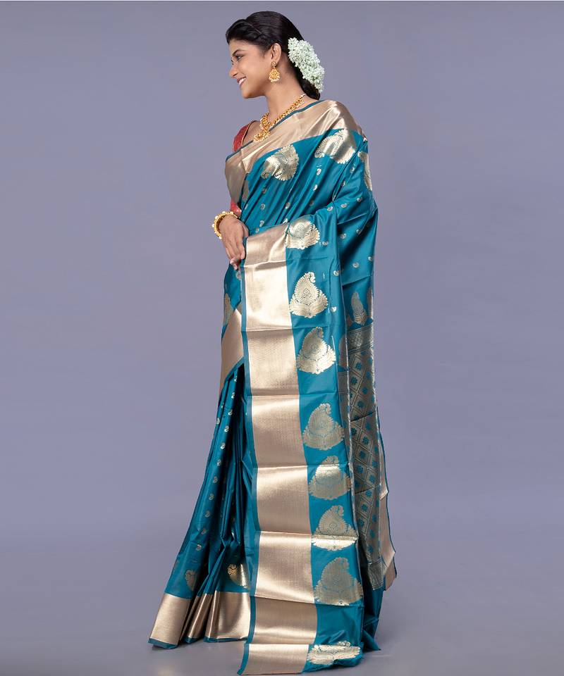 | Product Name | Kanjivaram Saree In Blue Color With Golden Border And Booti | |