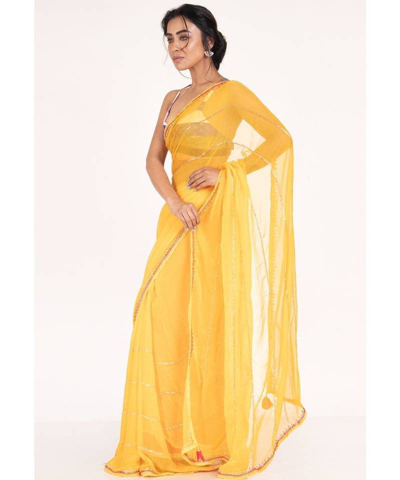 | Product Name | Yellow Pure Chiffon Saree With Hand Embroidered Work Of Pearl And Beads | |