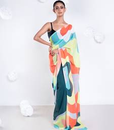 Zoe georgette digital printed saree in green color