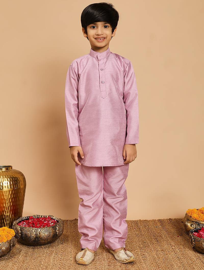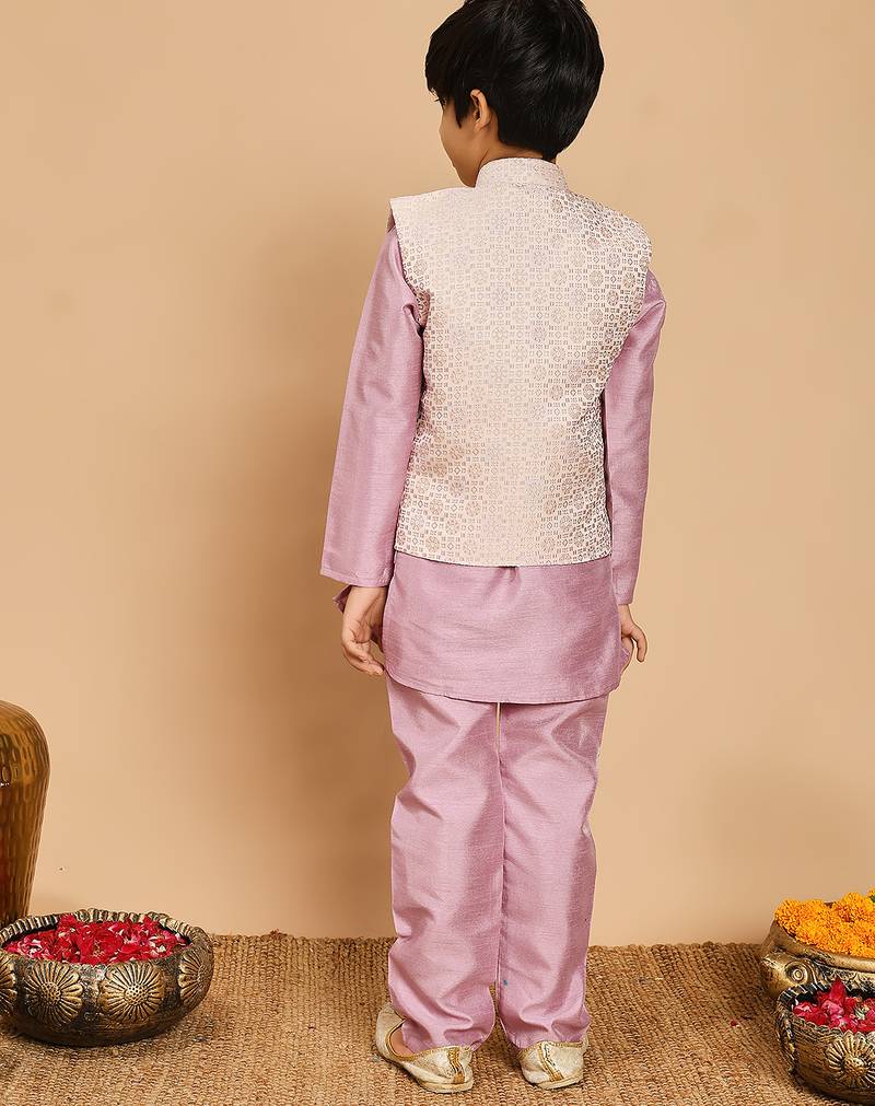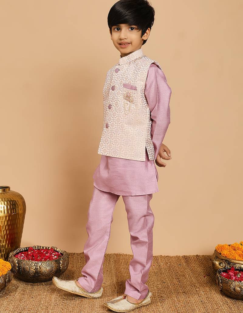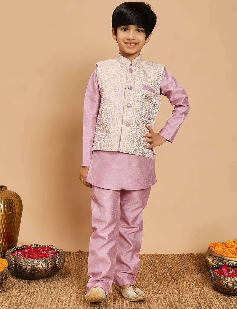 | Product Name | Boys Lilac Cotton Silk Kurta & Pyjama Set With Jacquard Nehru Jacket | |