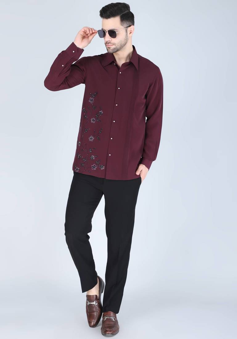 | Product Name | Wine Red Hand Embroidered Long Sleeve Shirt For Men | |