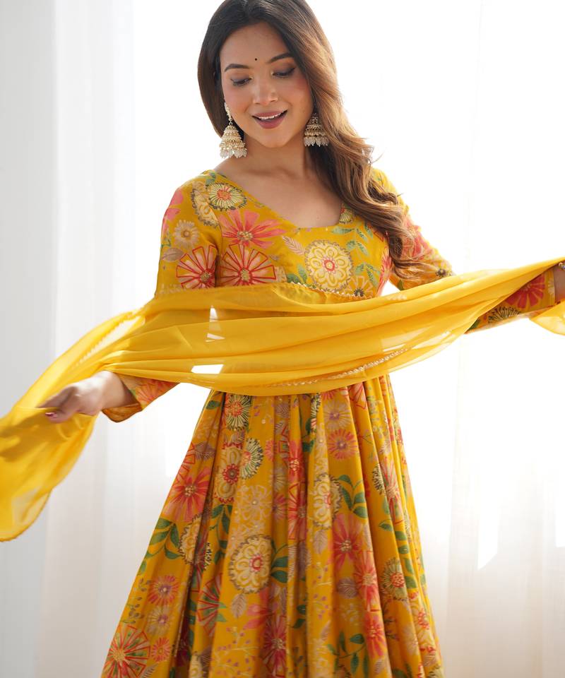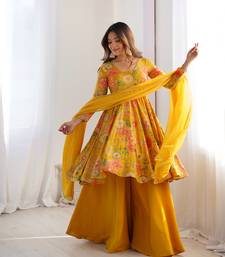 | Product Name | Mustard Color Roman Silk Discharge Printed Plazzo Suit | |