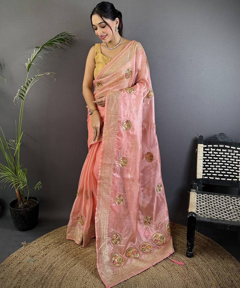 | • | Saree | : | Color- Baby Pink / Fabric- Organza |