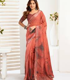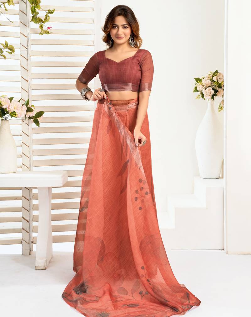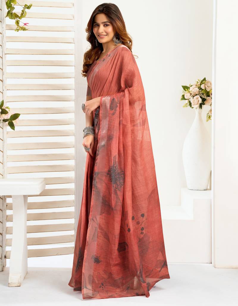 Coral linen floral printed ready to wear saree