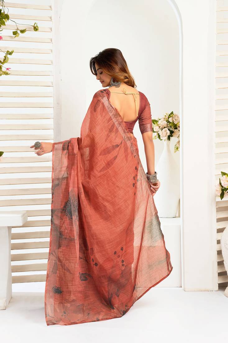 | Product Name | Coral Linen Floral Printed Ready To Wear Saree | |