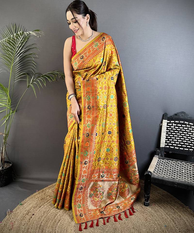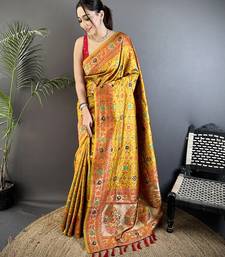 | Product Name | Golden Yellow Soft Silk Blend Banarasi Zari Woven Saree | |