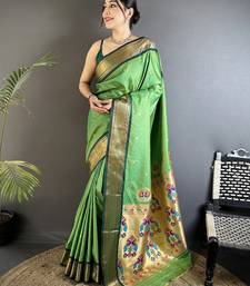 Green lichi silk blend peacock ethnic motifs zari woven paithani saree