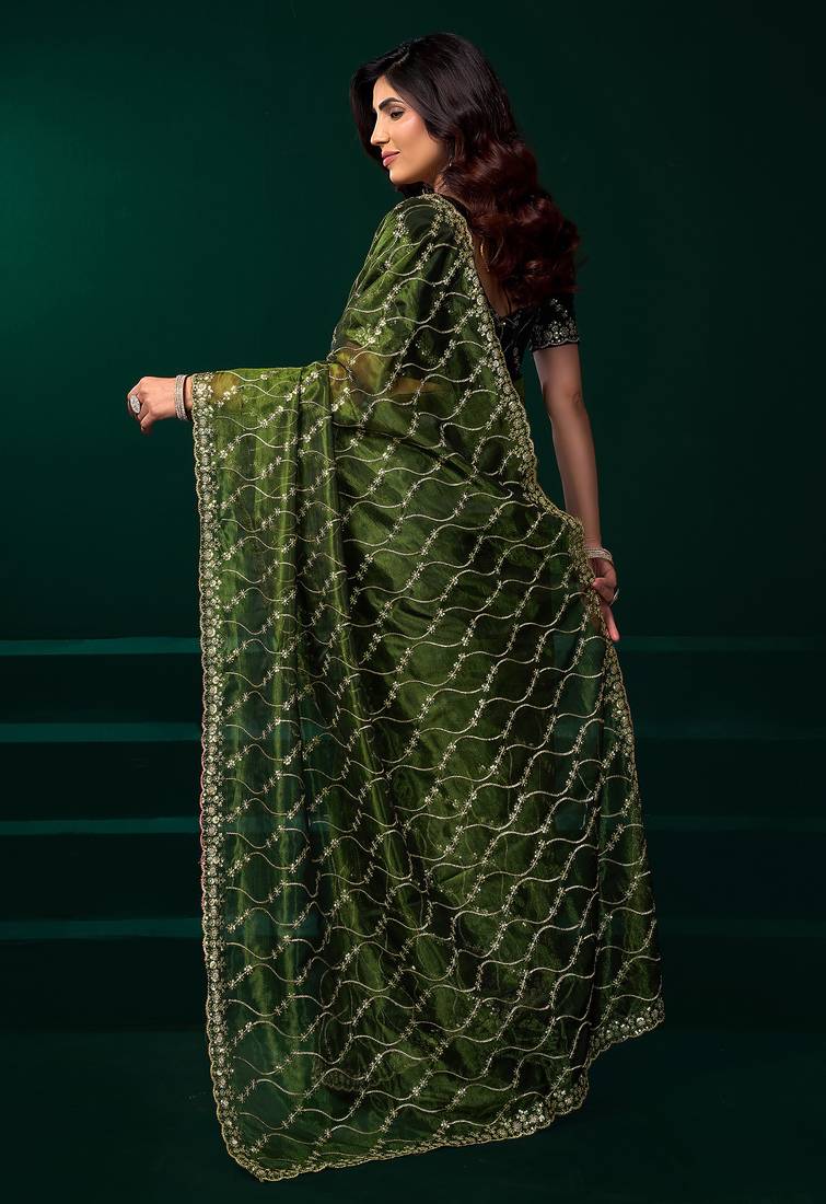 | Product Name | Green Net Jaal Pattern Sequence Embroidery Thread Work Party Wear Saree | |