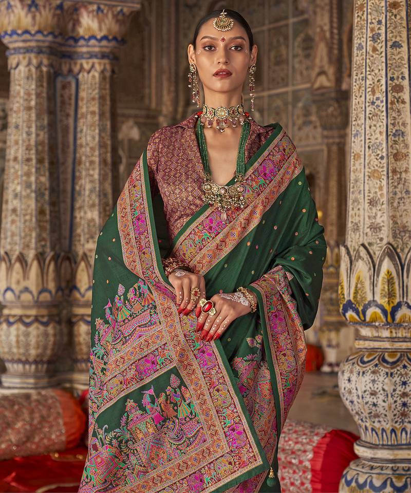 | Product Description | Elevate Your Ethnic Charm With The Green Poly Viscose Silk Polka Dot Printed Banarasi Saree, Crafted For Timeless Tradition And Modern Elegance. Its Rich Green Shade And Classic Polka Dots Make It Perfect For Festive Wear And Wedding Collections.
