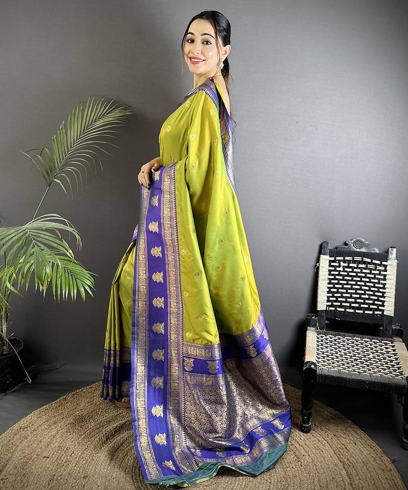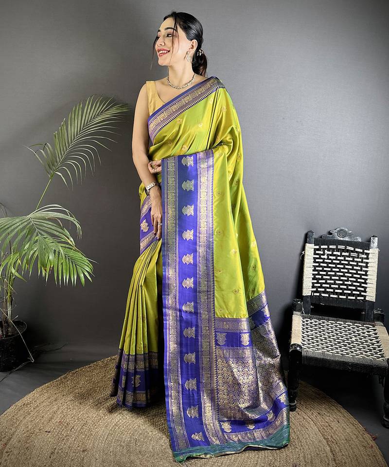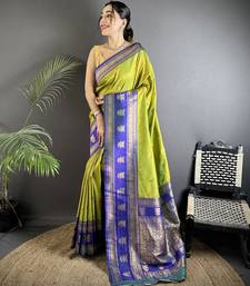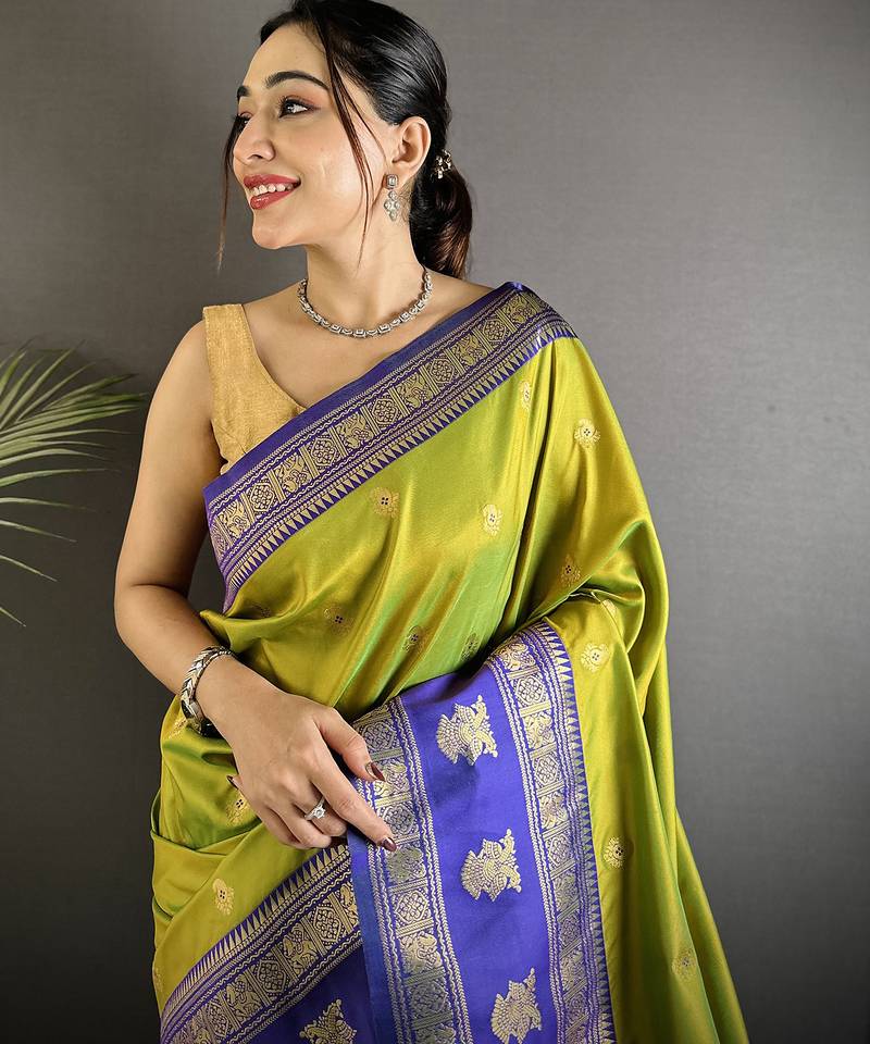 Green soft silk blend banarasi zari woven butti weaving saree