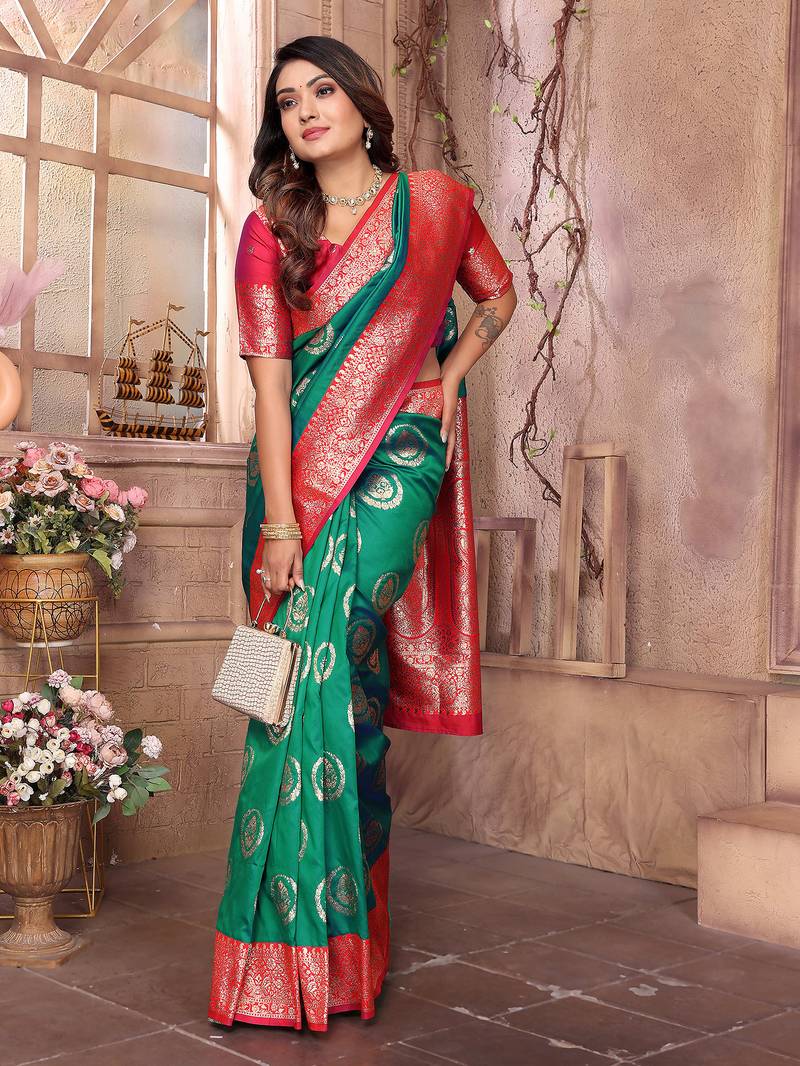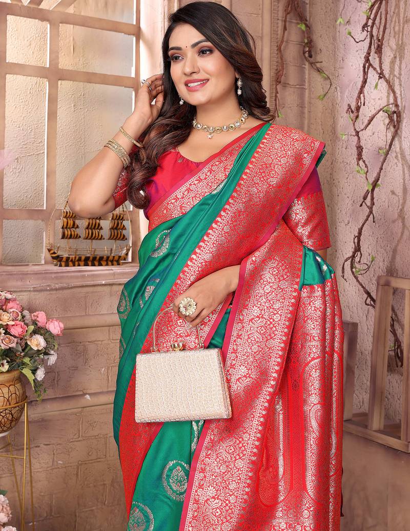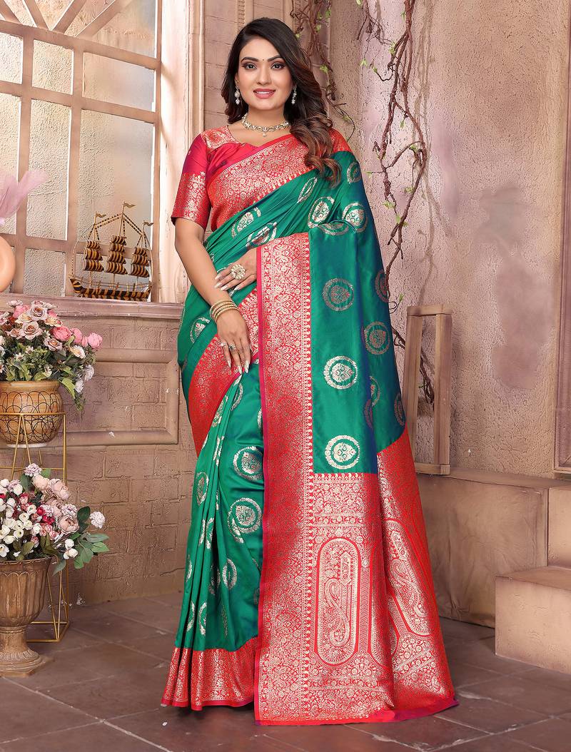 | Product Name | Green Soft Silk Blend Banarasi Zari Woven Saree | |