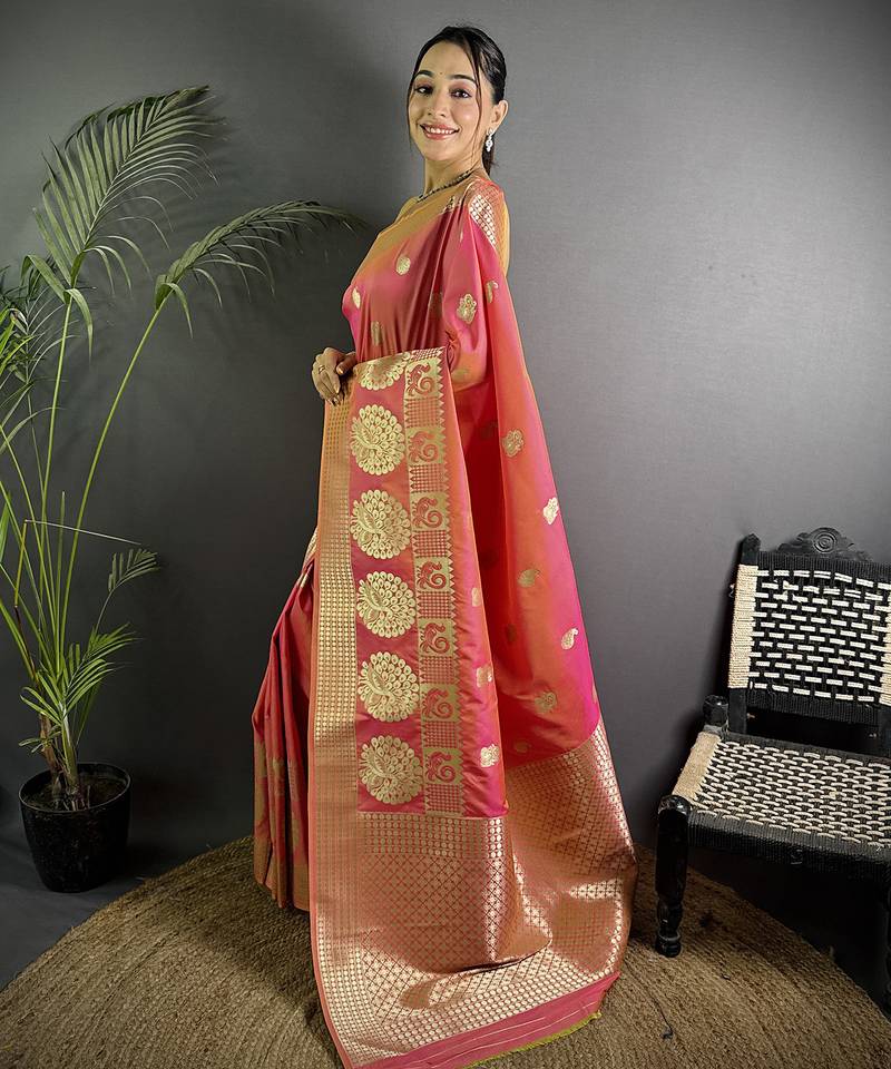| Product Name | Light Pink Soft Lichi Silk Blend Golden Zari Paisley Banarasi Saree | |